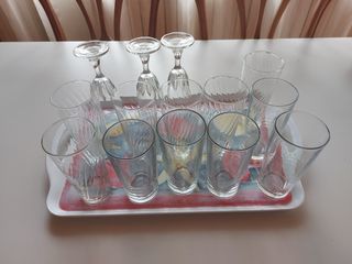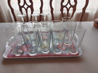 Oportunidad!! Sin estrenar!! Juego nuevo de 18 vasos y jarra de cristal sencillos y atemporales. Perfectos para el día a día. Están en su embalaje original y nunca se han usado. Son de la marca propia de Auchan. 6 vasos anchos 6 vasos pequeños 6 vasos altos 1 jarra Valen para lavavajillas y microondas. Preferiblemente se vende todo el conjunto.