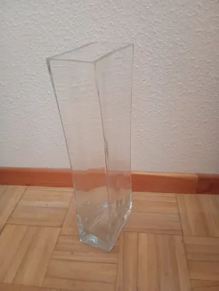 Elegante jarrón de cristal con un diseño moderno y minimalista. Su forma cuadrada y líneas suaves lo hacen perfecto para cualquier espacio. - Medidas: alto 45 cm. Ancho 13 cm. Y fondo 9 cm. - Material: Cristal - Color: Transparente