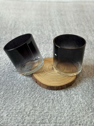 Elegantes vasos con un degradado de color negro a transparente , tienen muy poco uso