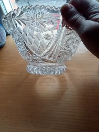 Medidas fuente 21x21 y 12 de altura Bombonera 15x15 y 18 de altura Se venden por separado 20€ cada una En Conjunto 34€ Elegante conjunto de fuente y bombonera de cristal tallado. - Diseño intrincado y detallado. - Piezas decorativas y funcionales.