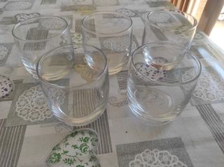Lote de 5 vasos, nuevos sin estrenar, para agua o whisky, precio:7€ los cinco.