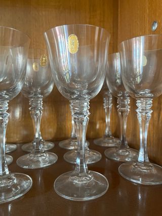 Vendo lote de copas y vasos de cristal en muy buen estado, ideales para completar menaje o para reuniones y celebraciones. Incluye varios modelos: • Copas tipo balón • Copas de vino • Copas de cava / champagne • Vasos de agua o refresco En total es un lote grande (más de 20 piezas). Todo está sin golpes ni roturas, bien cuidado.