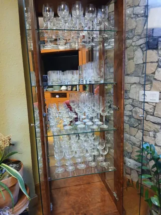 Conjunto de 59 piezas de cristalería variada con detalles tallados. - Variedad de copas para diferentes ocasiones. - Diseño elegante con borde dorado. ( se vende el lote entero o x separado ) varia el precio ( algunas copas de los años 80 talladas ) otras lisas ( vasos con platillo ) variedad ( vasos de chupito ) cos copas de jerez.....