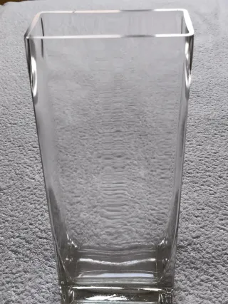 Elegante jarrón de cristal con un diseño moderno y minimalista. Su forma cuadrada lo hace versátil para cualquier tipo de decoración. - Material: Cristal. - Color: Transparente.