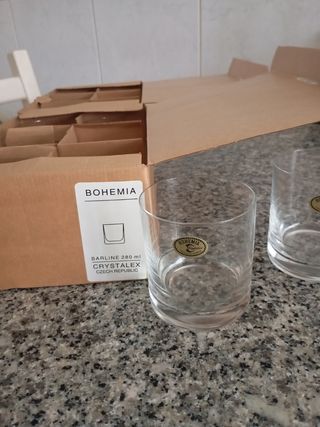 48 vasos de tubo de cristal. 31CL. También tengo vasos de chato, preguntad sin compromiso. No hagi envíos