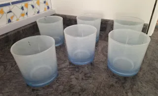Seis vasos de vidrio azul y blanco