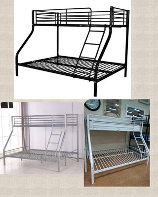 Info: 619 547 616 Maleni Estupenda litera tres plazas, en parte inferior cama de matrimonio (colchón 135x190cm) y la superior individual (colchón de 90x190cm) estructura de metal resistente. No incluye colchones, consulta coste. Ideal para cualquier espacio en tu hogar Medidas: 200largo, 160alto, 145ancho Colores: Blanco, gris y negro 3 años de garantía Envío a domicilio por un coste adicional