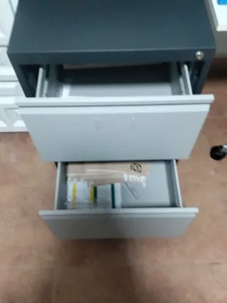 Archivador de oficina con dos cajones. Su diseño es moderno y funcional. - Acabado en color gris y negro. - Fabricado en metal resistente. Con su llave. Medidas: 62 de fondo x 48'5x 70 cm. De alto. Precio no negociable.