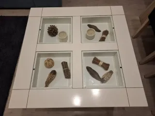 Mesa de centro de cristal y madera
