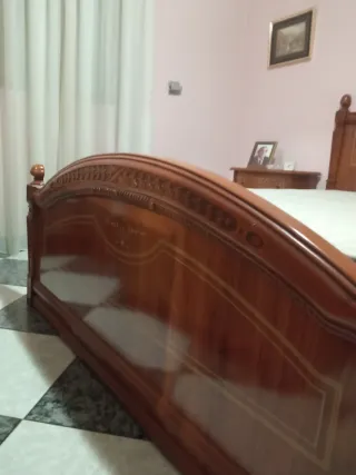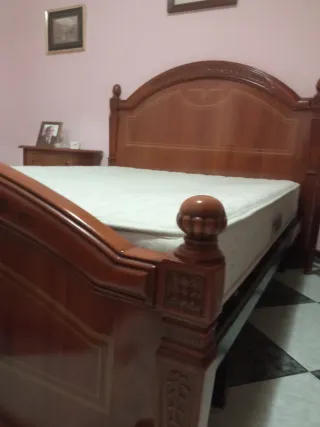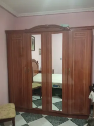 Dormitorio de matrimonio completo cama de 135 por 190 cabeceros dos mesillas de tres cajones cada una armario cuatro puertas dos de ellas espejo cómoda con cuatro cajoneras y espejo precio negociable solo venta en persona y a recoger no envío precio negociable