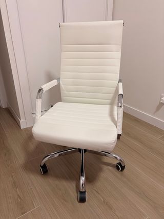 Silla de oficina moderna y elegante, con un diseño ergonómico para mayor comodidad. - Tapizado en polipiel de alta calidad. - Base cromada con ruedas. - Respaldo alto para soporte lumbar.