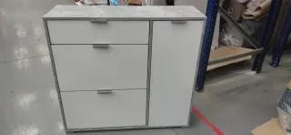 Mueble de almacenaje Baggebo en color blanco. Cuenta con una puerta y un diseño moderno. - Estructura robusta. - Tirador integrado. ¡¡¡Tengo 2 iguales. Uno 15€ y los dos por 25€!!! SE RECOGE EN COSLADA