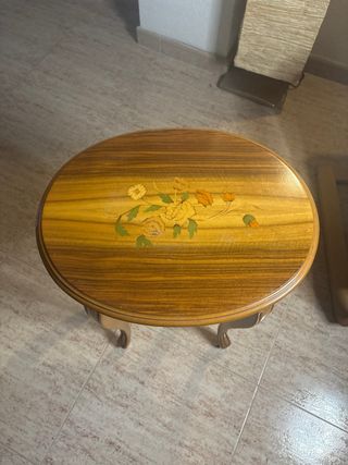Mesita auxiliar de madera con diseño floral