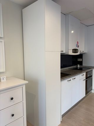 Armario alto con dos puertas. Vendo armario blanco en muy buen estado, práctico y funcional. Ideal para ropa, almacenaje o despensa. Medidas: • Alto: 2,20 m • Ancho: 40 cm • Fondo: 61 cm Distribución: • 2 puertas • Parte inferior (1,40 m) + parte superior (80 cm) • Incluye 2 estantes y 2 barras para colgar ropa Es un armario estrecho pero con bastante capacidad gracias a la altura. Precio para recoger cuanto antes