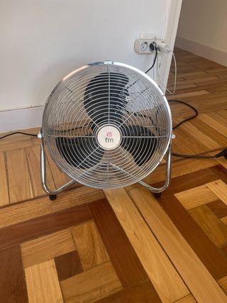 Ventilador de suelo con tres niveles de potencia para regular el flujo de aire. - Diseño moderno y funcional. - Base estable para colocar en cualquier superficie.