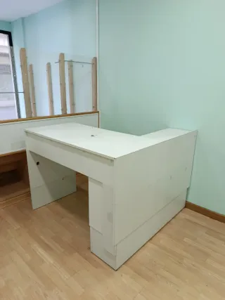 Mesa mostrador en forma de L, ideal para negocios. Su diseño permite optimizar el espacio. - Color blanco Escucho ofertas