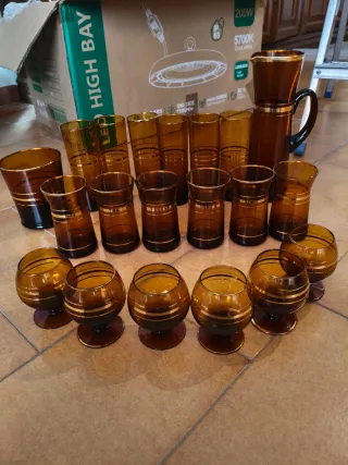 Juego de copas y jarra ámbar