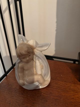 Figura decorativa de un bebé tierno envuelto en tela. - Diseño delicado. - Acabado en cerámica.