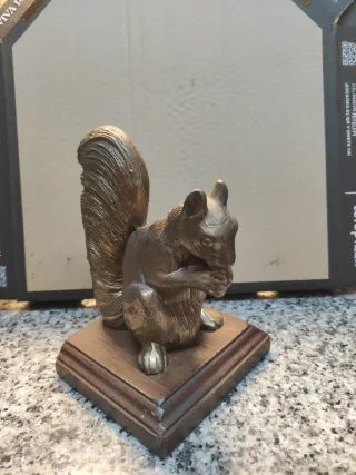 Par de soportes para libros con diseño de ardilla. - Acabado en latón. - Base de madera.