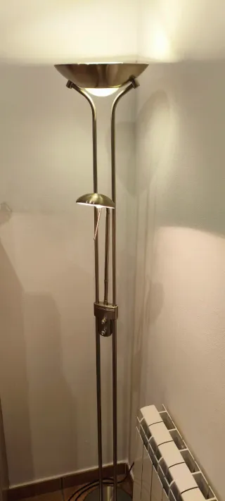 Làmpara de peu amb els llums regulables en intensitat. Te dos llums, un de lectura i un general.