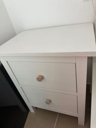 Se venden dos mesitas de noche modelo Hemnes de IKEA. Son de color blanco y están fabricadas en madera. - Diseño clásico y funcional. - Cajones con tiradores redondos de madera.