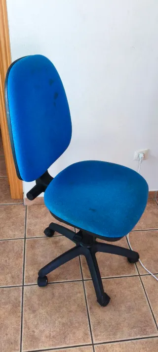 Silla de oficina con ruedas de color azul.