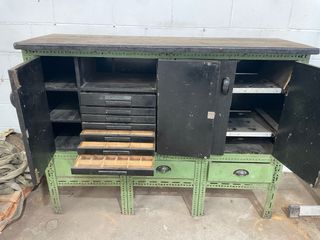 -Mueble de madera estilo industrial vintage, muy robusto y funcional. Tiene armarios con puertas y varios cajones con compartimentos. Conserva pátina original con marcas de uso que le dan mucho carácter. Medidas: 120 cm alto x 155 cm ancho x 50 cm fondo. Solo venta en persona