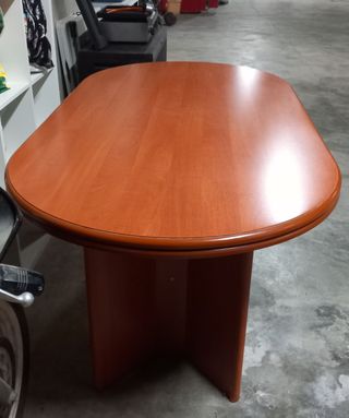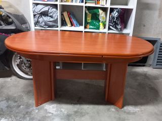 Mesa de comedor extensible en perfecto estado. Su diseño ovalado y acabado en madera le dan un toque elegante. Venta solo en persona. - Extensible para mayor capacidad. Abierta 2'31cm - Acabado en tono marrón cálido.