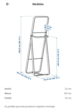 Espejo de pie de la marca IKORNNES. Un artículo de decoración funcional y elegante. - Número de artículo: 302.983.96 - Altura: 5 cm - Longitud: 173 cm - Peso neto: 11.21 kg - Volumen: 45.4 l - Peso: 12.45 kg - Ancho: 53 cm - Cantidad: 1