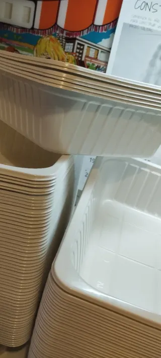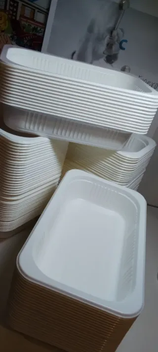 100 unidades de bandejas de plástico apilables , homologadas para toda clase de alimentación.Son ideales para organizar o almacenar. Hostelería, catering, buffets, bares, restaurantes,cocinas, tapas, carnicerías,platos preparados, panaderías, charcuterías.... - Diseño apilable para ahorrar espacio. - Color blanco