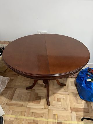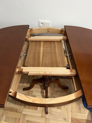 Mesa de comedor con un diseño clásico y funcional, perfecta para ampliar el espacio. - Fabricada en madera. - Color marrón oscuro.