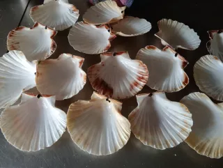 Lote de 30 conchas de vieira, perfectas para decoración , manualidades o para cocinar ya que no tuvieron ningún uso. Tamaño grande 13/14 cm de diámetro. - se puede hacer lote de la cantidad deseada. - Conchas de vieira naturales. - Ideales para proyectos creativos. - Cada concha es única.