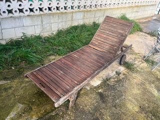 Tumbona sillas mesas de madera teca, ideal para disfrutar del exterior. Lo vendo en conjunto o por partes. - Estructura robusta de madera. -