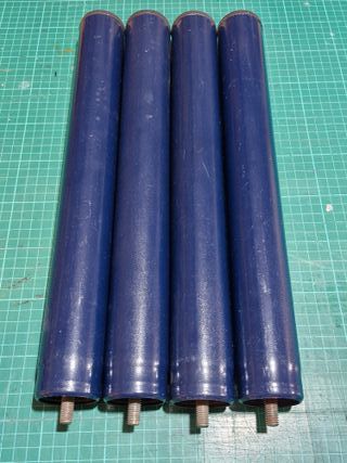 Varios tipos y tamaños de patas metálicas para camas o muebles.