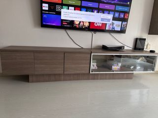 Conjunto de mueble de salón y mesa de comedor con un diseño moderno. - Mueble de salón con varios compartimentos. - Mesa de comedor a juego.