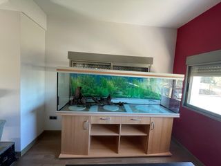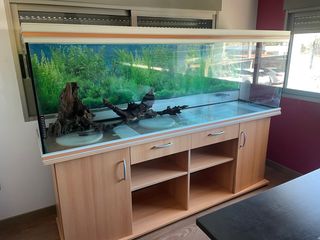 Acuario Aqualife de 640 litros con su mueble a juego. - Capacidad: 640 litros. - Con mueble y manual de montaje original - Diseño moderno y elegante. - Incluye: - 4 Tubos de luz - 3 calentadores de agua - Filtro marca Rena FilstarXp en perfectas condiciones - Troncos y piedras de adorno Medidas Acuario: 2 metros largo x 50 profundo x 73 alto Medidas mueble: 193 cm largo x 51 profundo x 74 alto Todo en buenas condiciones de conservación a excepción de uno de los portatubos de luz que está roto, pero tiene 3 tubos de luz adicionales