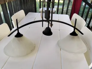 Elegante lámpara colgante con un diseño moderno. - Estructura principal en metal negro. - Pantallas de cristal blanco translúcido.