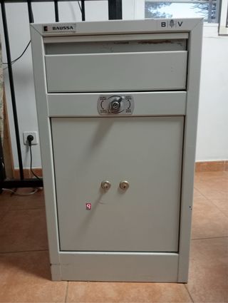 Caja fuerte de seguridad de la marca BAUSSA. - Construcción robusta en metal. - Acabado en color gris. - apertura retardo 9 min -posibilidad anclar en pared - peso : unos 30 kilos
