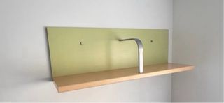 Estantería moderna para colgar en la pared. Combina un diseño funcional con materiales duraderos. Buena calidad. El precio es de las dos juntas - Panel trasero en color verde. - Estante principal en acabado madera. - Soporte metálico curvo integrado.
