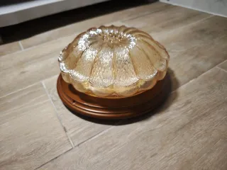 Elegante plafón de techo con un diseño clásico y detalles que aportan calidez. - Acabado en tonos dorados y marrones. - Fabricado en cristal.