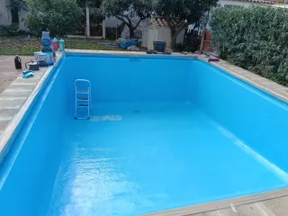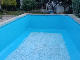 Piscina lista para instalar o renovar. Su interior es de un vibrante color azul. - Revestimiento interior azul.