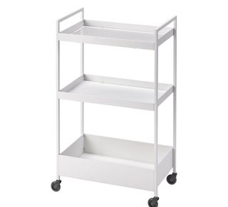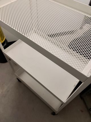Carrito auxiliar Nissafors de Ikea, ideal para organizar cualquier espacio. - Estructura metálica. - Tres niveles de almacenamiento. - Ruedas para fácil movilidad. Perfecto estado!