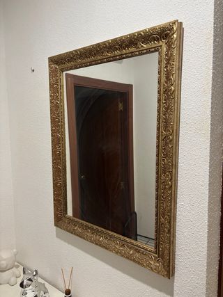 Espejo decorativo dorado con marco tallado