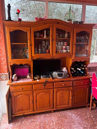Mueble de comedor en perfecto estado, con un bonito acabado en color cerezo. Sus dimensiones son 3 metros de ancho por 2.1 metros de alto. - Amplio espacio de almacenamiento. - Diseño elegante y funcional.