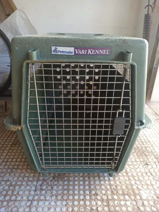 Transportín de plástico resistente para perros medianos. Cuenta con rejilla metálica para ventilación. - Diseño robusto. - Rejilla frontal de metal.