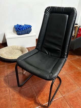 Conjunto de seis sillas de comedor con un diseño elegante. - Tapicería en piel. - Estructura metálica. - Color negro.