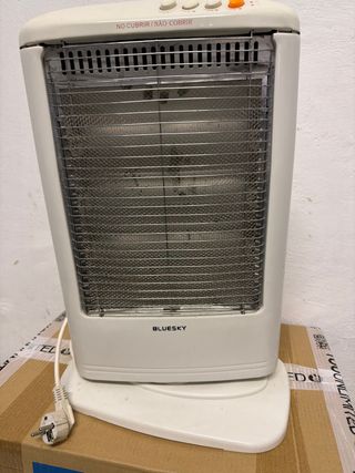 Calefactor de pie marca Bluesky. - Diseño moderno y funcional. - Base estable para mayor seguridad. - Rejilla protectora frontal. - Se entrega en mano