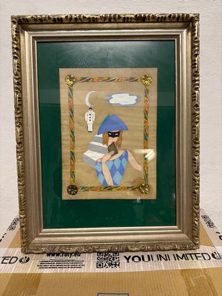 Cuadro decorativo con diseño de arlequín. - Marco con detalles dorados. - Fondo con motivos ornamentales. -se entrega en mano