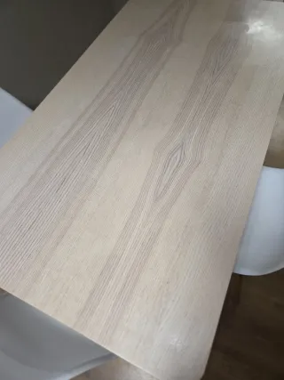 Mesa de comedor con un diseño moderno y elegante. - Acabado en tono madera natural. - Patas robustas para mayor estabilidad.