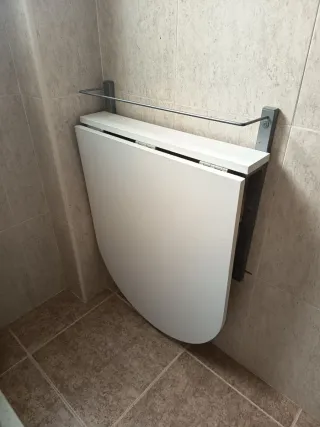 Mesa plegable de diseño moderno. Para cocina, salón comedor pequeño o habitación, ideal para espacios reducidos. - Mide 85cm de largo x 60cm de ancho. - Acabado en blanco. - Fabricada en madera. - Perfecto funcionamiento. - Entrego con sus tacos y tornillos para anclarla a la pared.